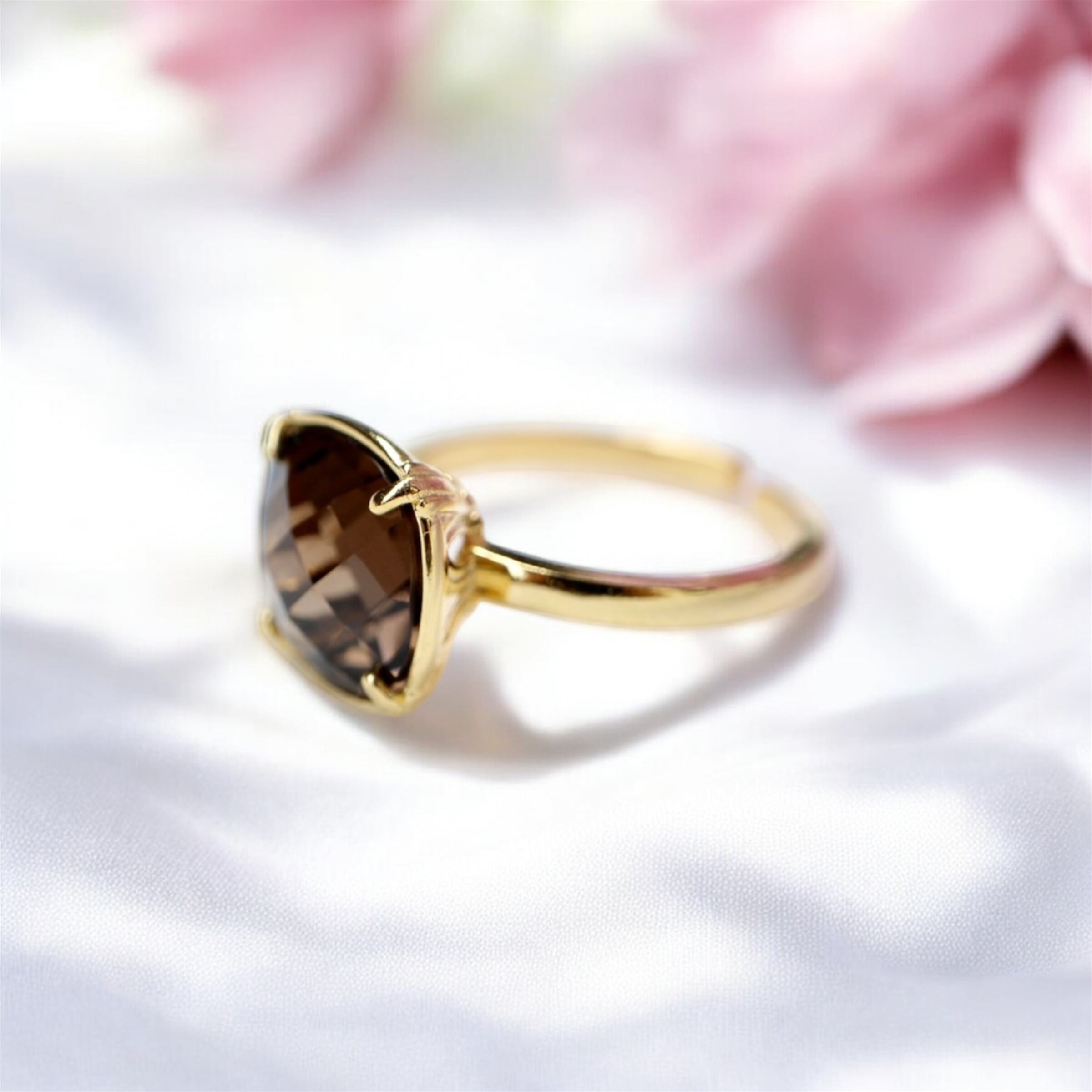 透明感のあるブラウンの色合いが魅力のスモーキークォーツ。