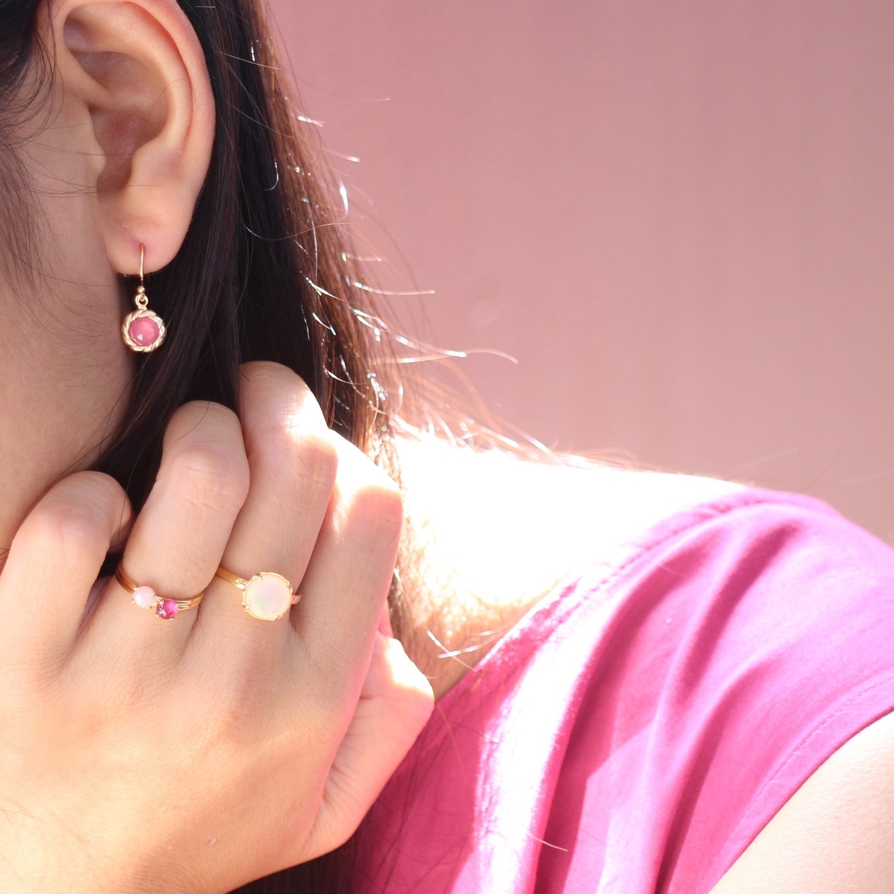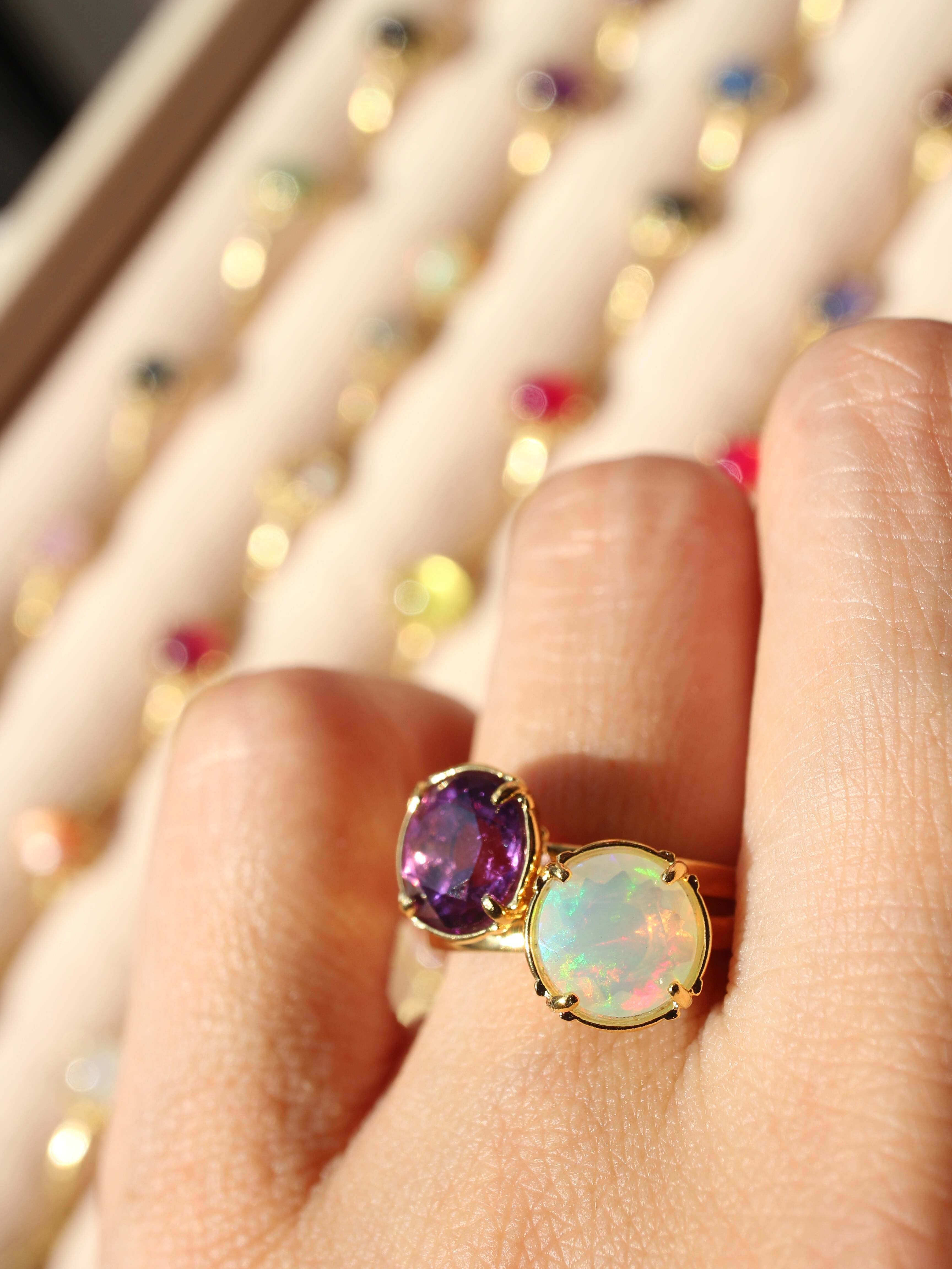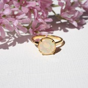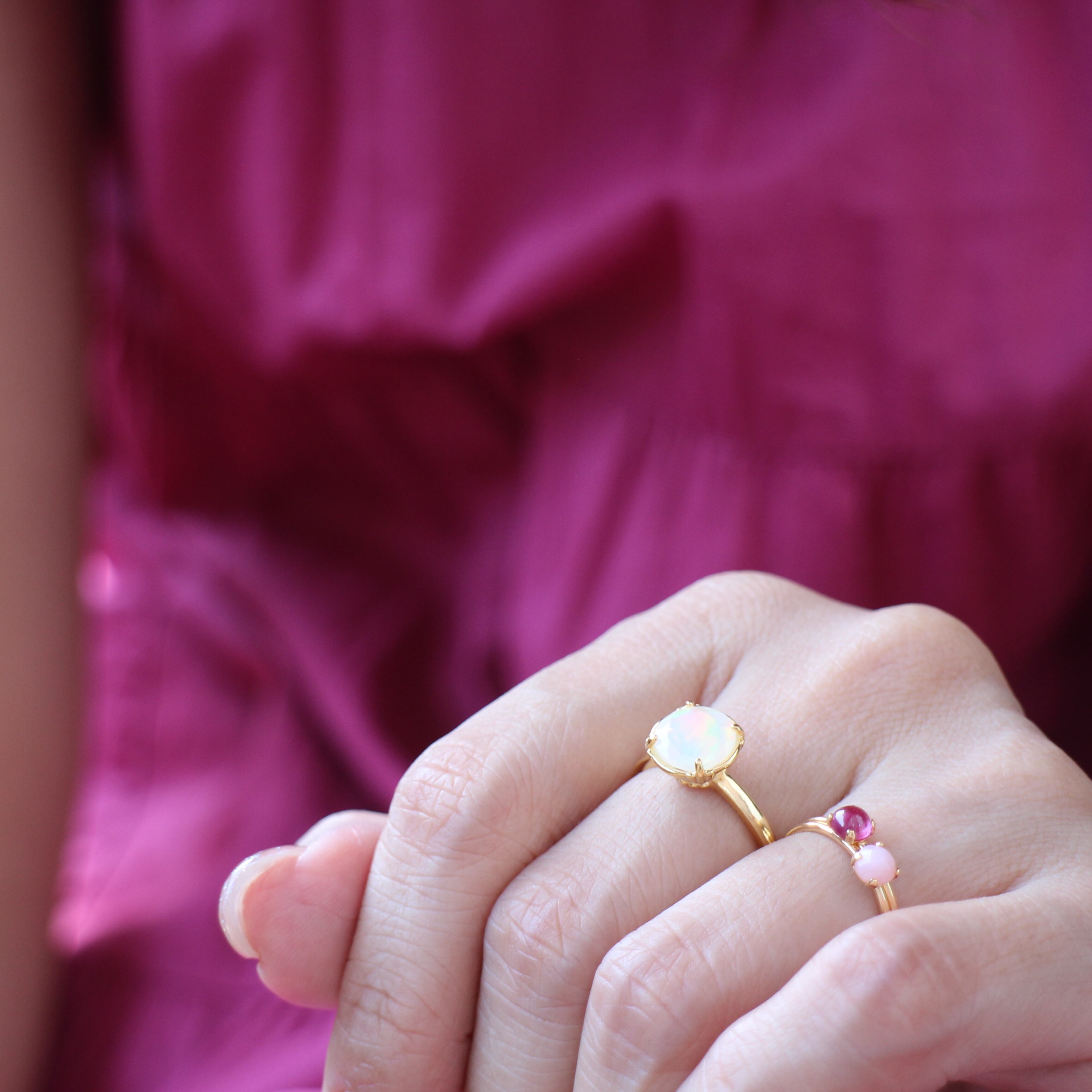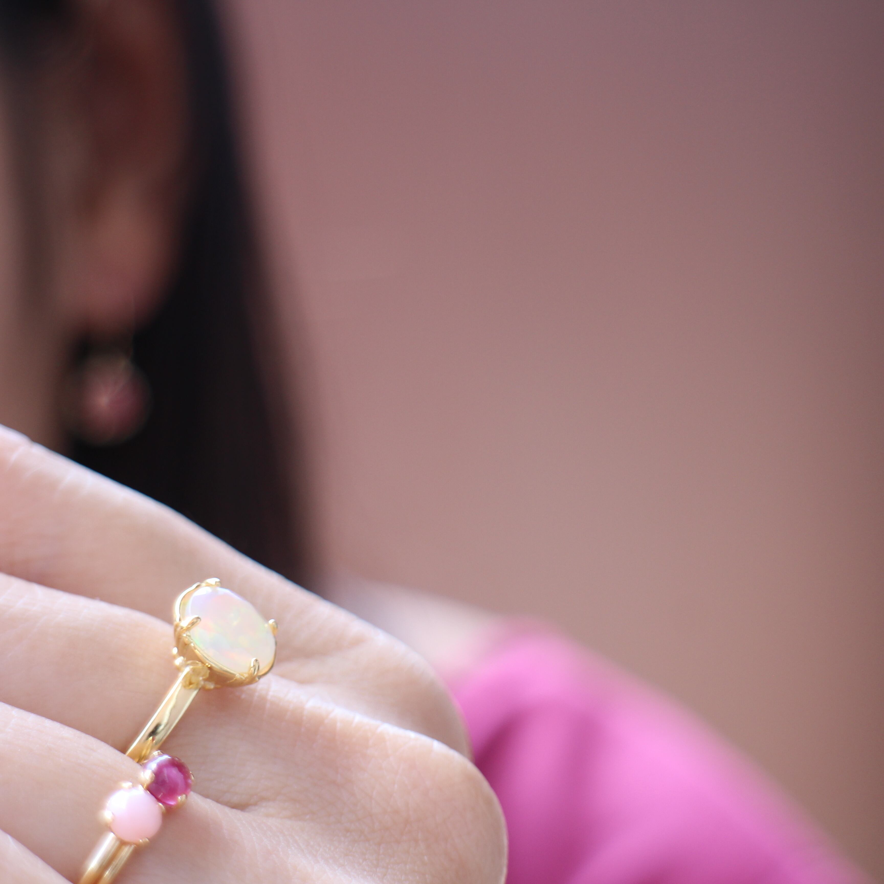 見る角度によって乳白色の上に青や緑などの色彩がきらきらと浮かび上がり、ずっと眺めていられる神秘的な美しさです。