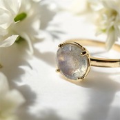 特徴的な輝きは、ラブラドレッセンスと呼ばれ、石を異なる角度から見ると虹色に輝きます。